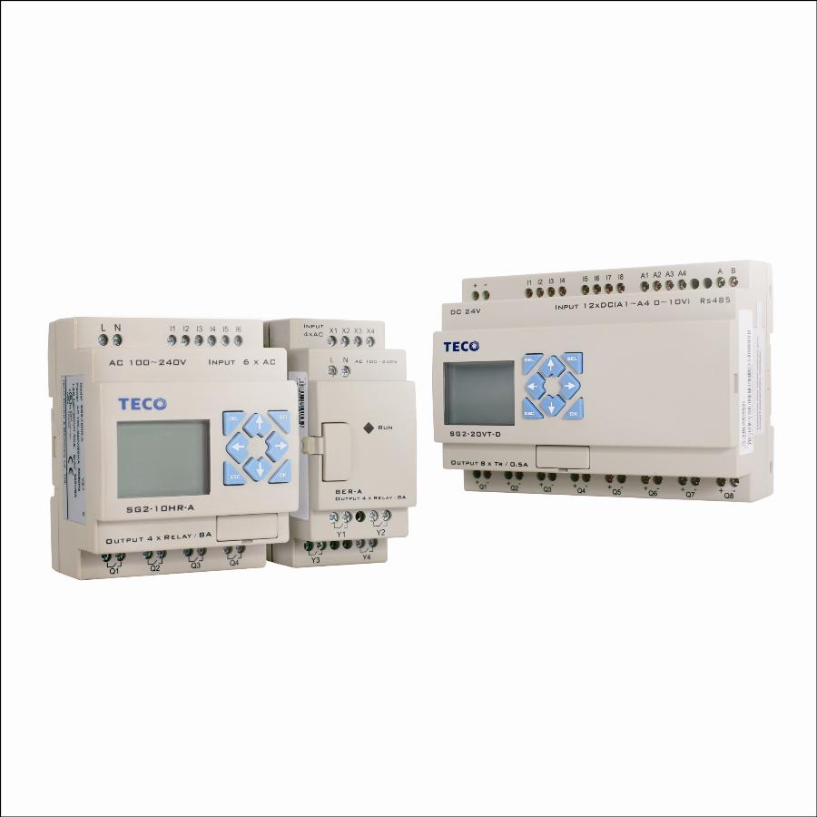機種較齊全:10/12/20點交、直流主機,模擬量輸入/輸出、溫度輸入、繼電器或晶體管輸出皆可選擇。 I/O點數可擴充至44點,包含3組8點(4點輸入/4點輸出)擴充模塊,1組模擬量輸入模塊、1組溫度輸入模塊、2組模擬量輸出模塊(2通道電壓或電流輸出)和1組通訊模塊。