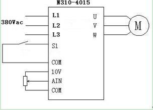 每套設(shè)備使用0.75KW變頻器和11KW變頻器;N310-2001-H1X負責(zé)拖動牽引電機帶動牽引輥對吹塑好的薄膜進行牽引;N310-4015-H3X負責(zé)拖動擠出機;牽引電機規(guī)格為0.75KW,50HZ,3.1A,1400RPM,帶有減速機;擠出電機規(guī)格為:380V,11KW,22.6A,1400RPM,50HZ,帶冷卻風(fēng)機,規(guī)格為95W,380V,50HZ,1400RPM;